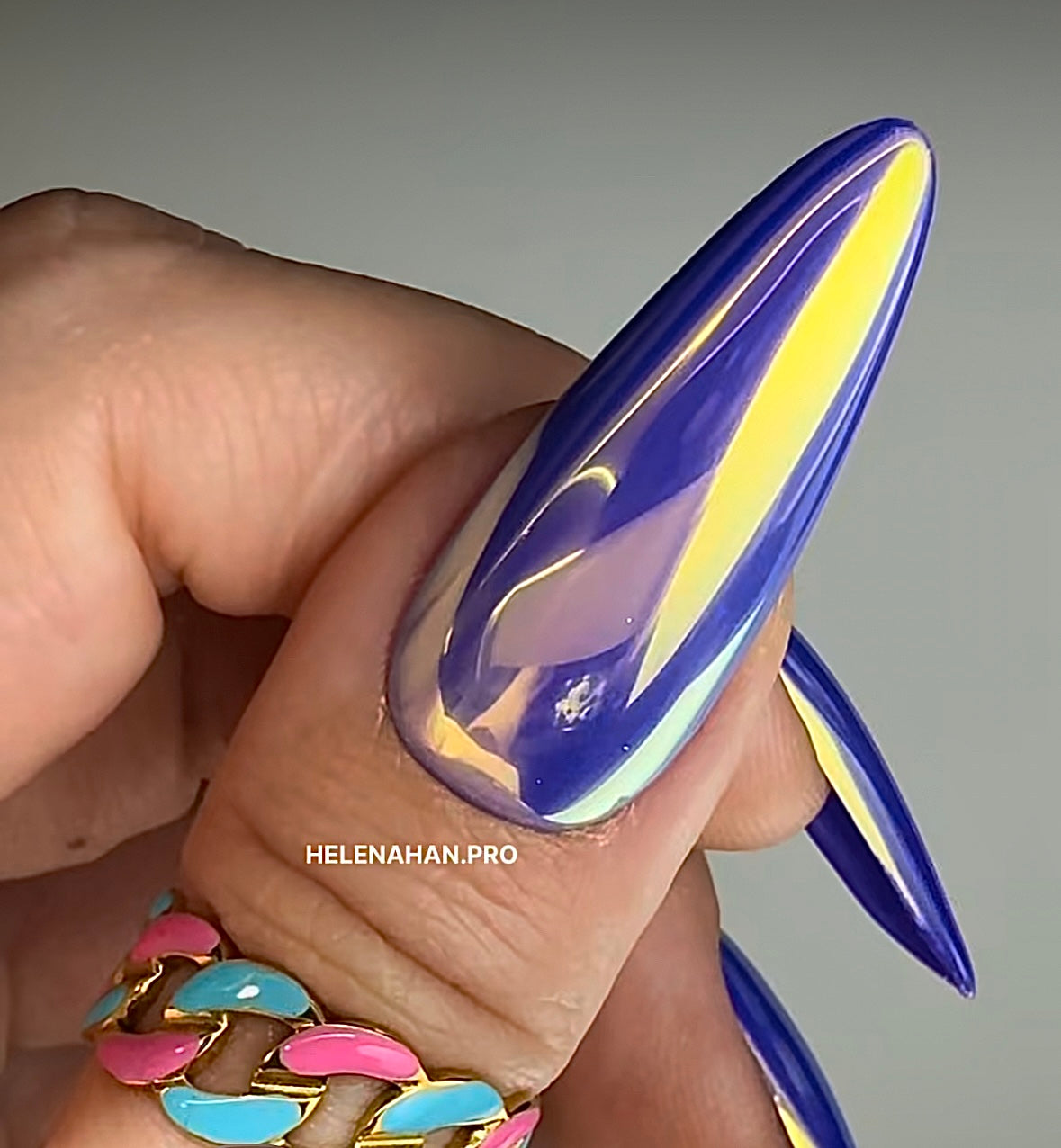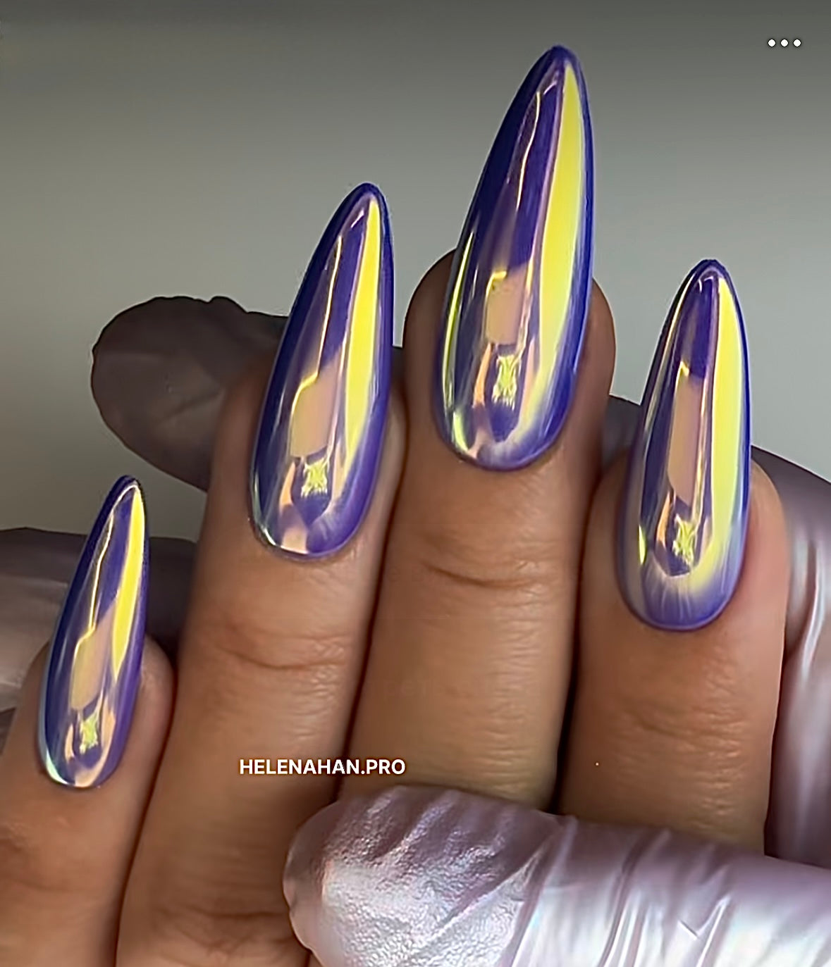 Aurora Powder can be used with gel, acrylic or nail polish.